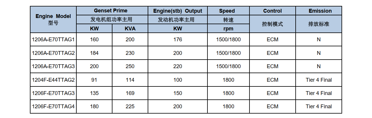 發(fā)動機排放等級不同配置會有所不同,具體排放信息請咨詢我們應(yīng)用工程師