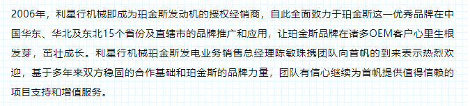 案例分享|珀金斯為晉樺豹設備提供強勁動力