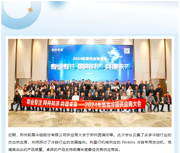 利星行機(jī)械榮獲鄭州凱雪冷鏈年度最佳優(yōu)秀供應(yīng)商獎(jiǎng)